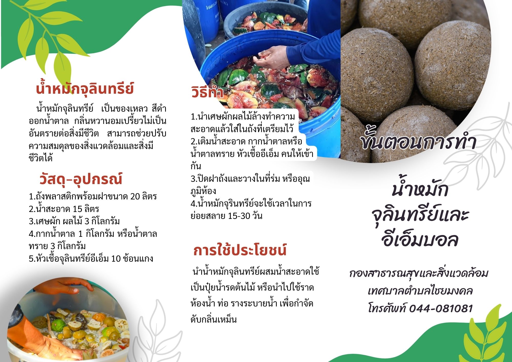 ประชาสัมพันธ์วิธีการทำน้ำหมักจุลินทรีย์ และอีเอ็มบ...