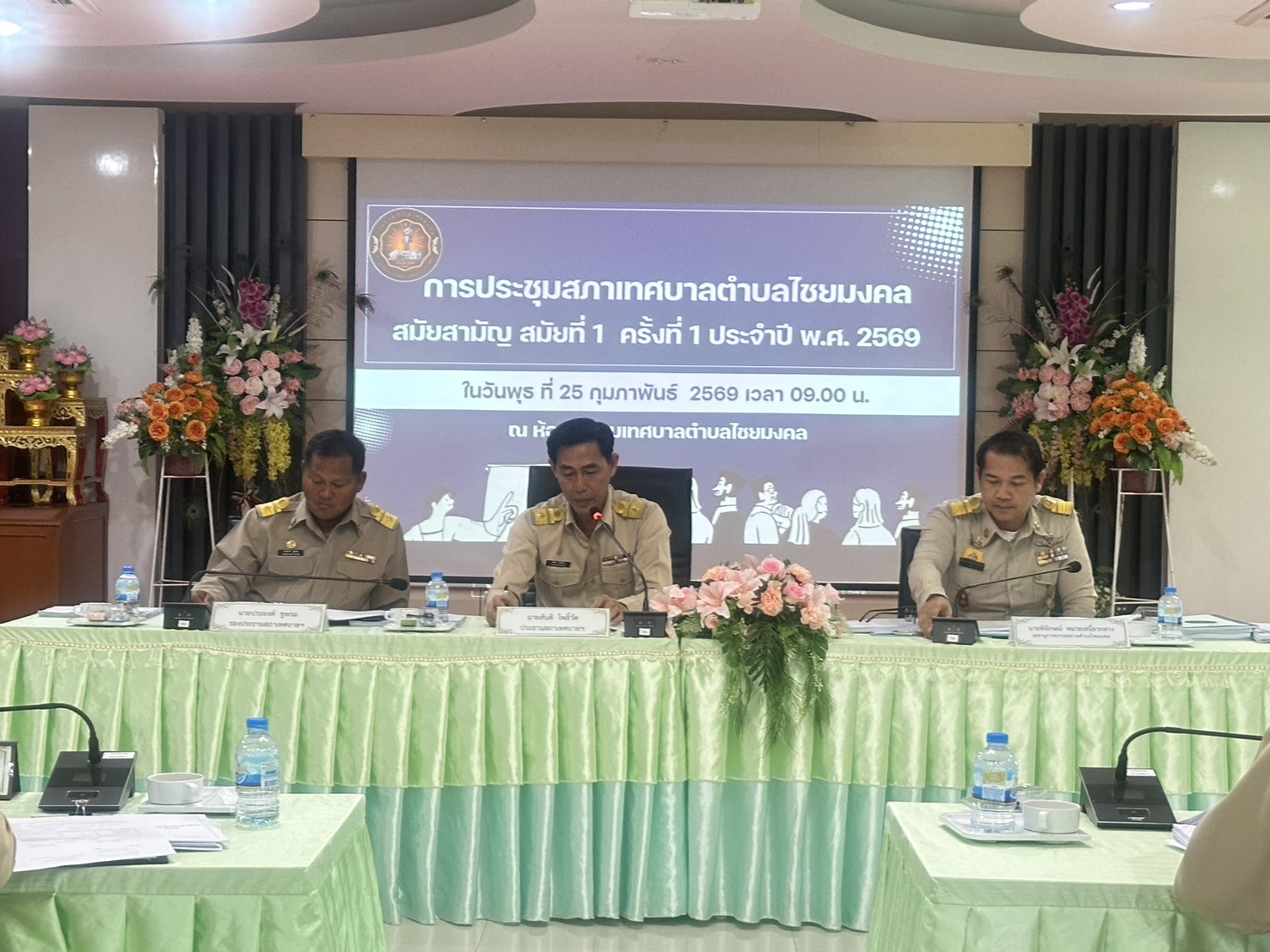 #ประชุมสภาเทศบาลตำบลไชยมงคล 🗓️วันพุธ ที่ 25 กุมภาพันธ์ 2569 สภาเทศบาลตำบลไชยมงคล ได้เปิดการประชุม สมัยสามัญ สมัยที่ 1 ครั้งที่ 1 ประจำปี 2569 ⏰เวลา 09.00 น. ณ ห้องประชุมเทศบาลตำบล